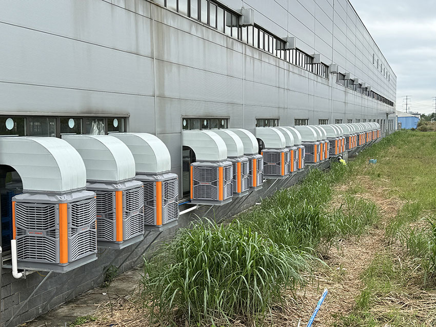 蒸發(fā)式冷風機:在車間的關(guān)鍵區(qū)域安裝蒸發(fā)式冷風機,利用水的蒸發(fā)吸熱原理,將冷風均勻地送入車間各個角落,迅速降低車間溫度。